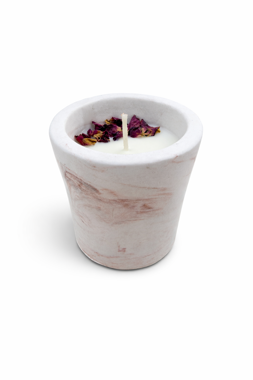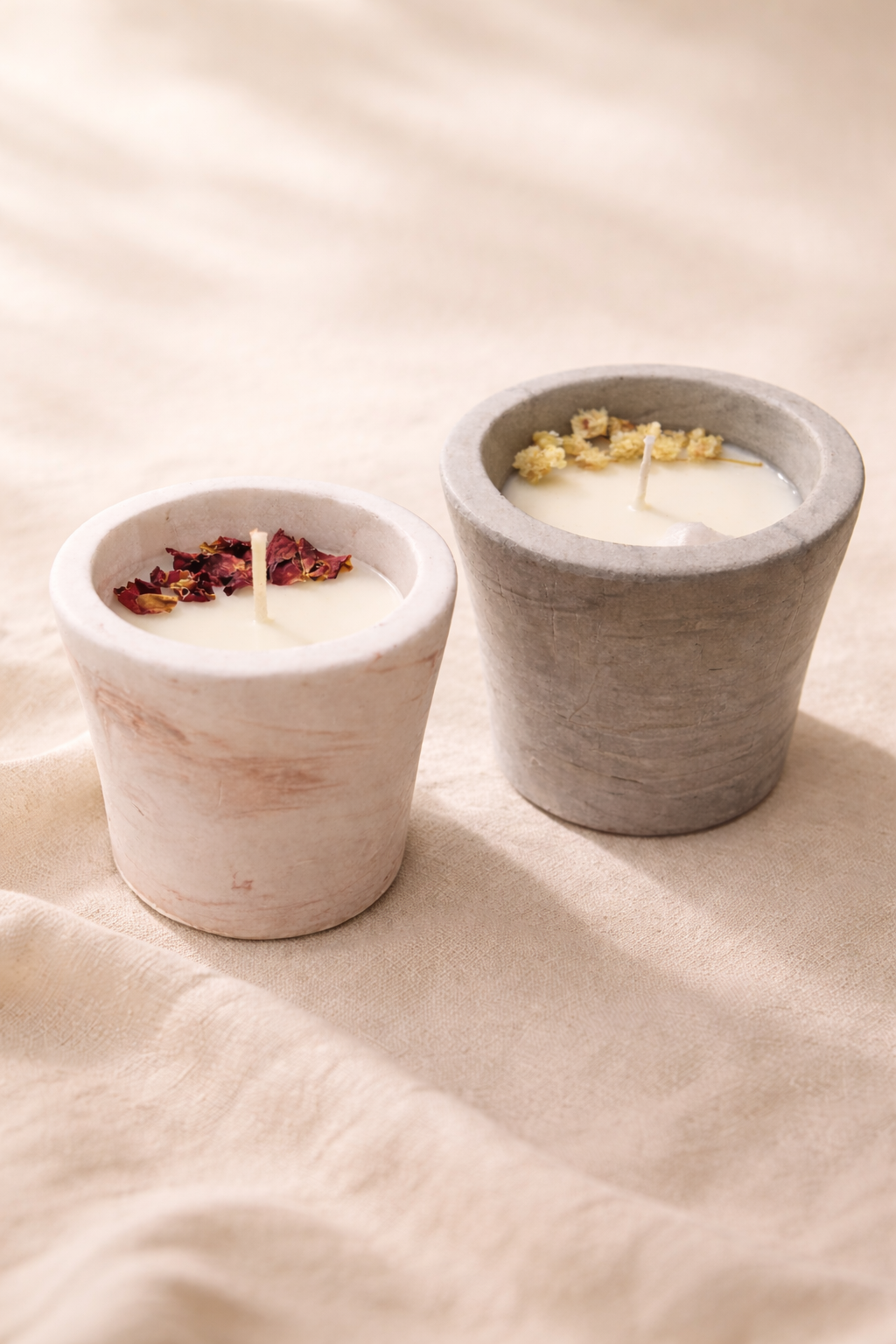 Pétalos de rosa naturales y hojas de eucalipto, cuidadosamente seleccionados, que aportan un toque botánico, delicado y elegante, haciendo de cada vela una pieza única inspirada en la naturaleza.