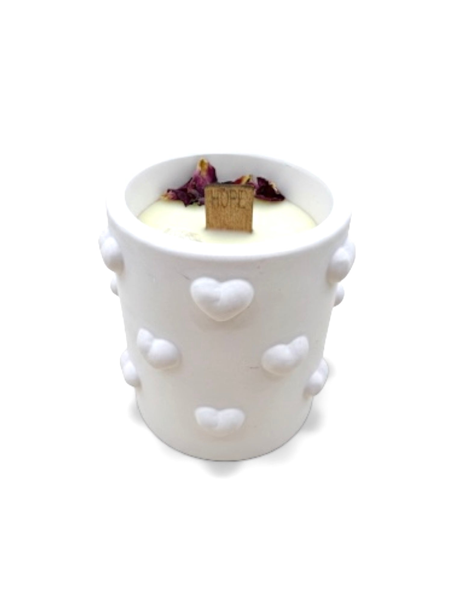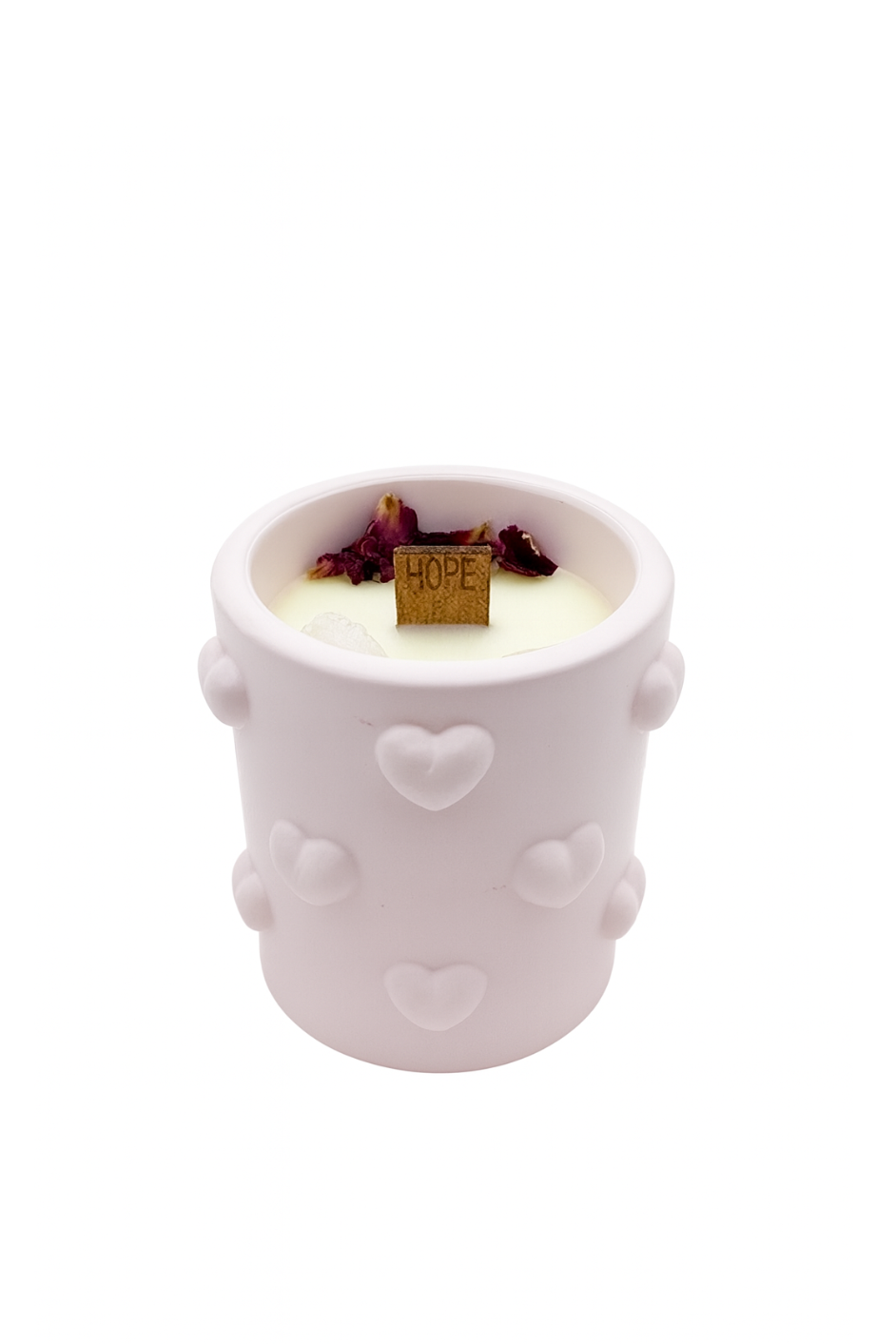 Déjate envolver por la suavidad de nuestra vela artesanal Amanti, creada en un recipiente con resina ecológica. Su acabado cuidado y su decoración con flores secas y fragmentos de cuarzo rosa convierten cada vela en una pequeña pieza de arte natural.