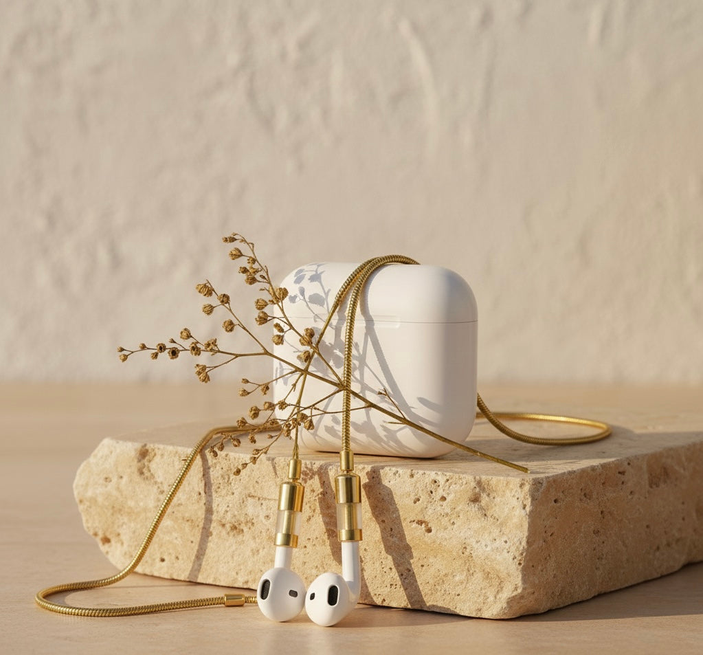 Descubre el complemento perfecto para tus AirPods y dispositivos similares con nuestra nueva cadena de acero inoxidable de Posidonia. Mantén tus auriculares siempre a mano con estilo y seguridad, gracias a este accesorio innovador que combina funcionalidad y elegancia.