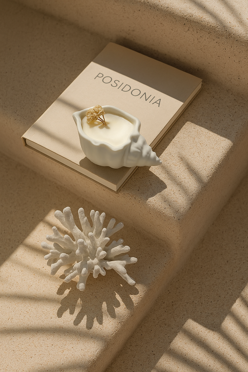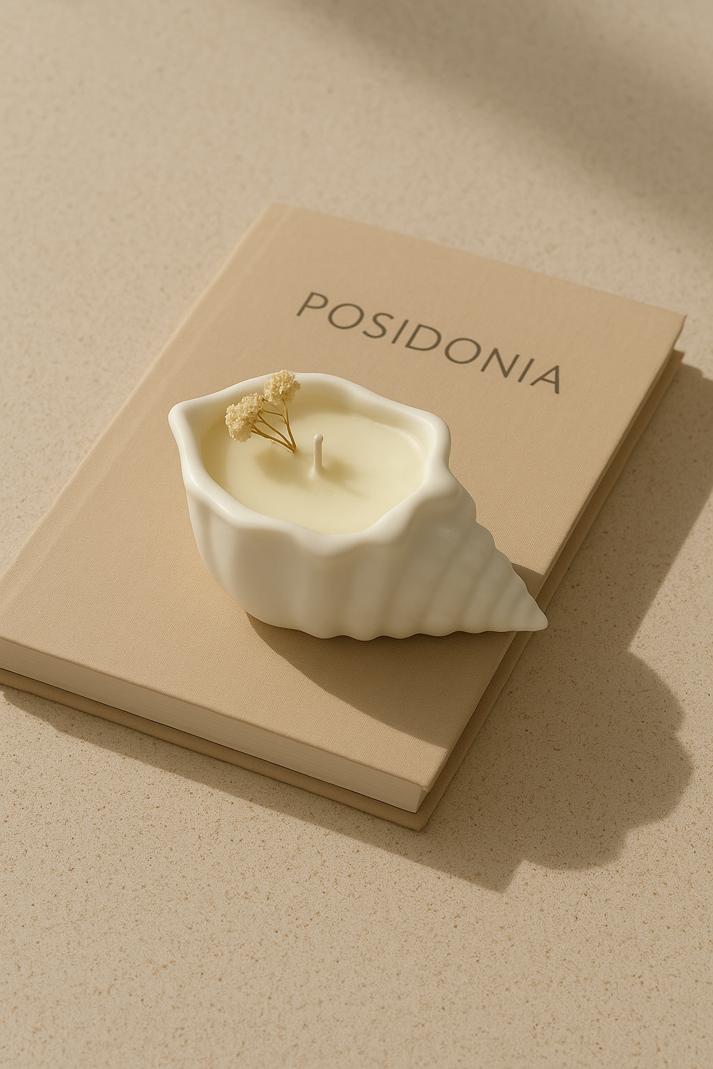 Descubre la magia del Mediterráneo con nuestra vela aromática de cera de soja y coco elaborada cuidadosamente a mano. Cada vela descansa en un delicado recipiente con forma de concha marina, hecho también de manera artesanal con resina ecológica, una combinación perfecta de belleza y sostenibilidad que crea acabados realmente únicos.